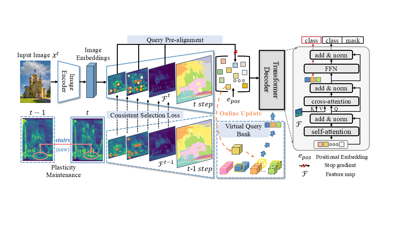 当前基于Transformer架构的统一图像分割器在持续图像分割中面临背景漂移和灾难性遗忘等诸多挑战。本工作重新思考了当前架构下持续学习问题的成因,揭示了Transformer中Query的内在物体感知能力(built-in objectness)对解决持续学习问题的重要意义。从查询(Query)的初始化、蒸馏到重放等多个角度综合解决问题,显著提升了模型在持续分割任务中抗遗忘和学习新知识的能力。实验结果显示该方法在全景分割和语义分割指标上显著优于现有方法,尤其在随机任务序列中表现出更强的鲁棒性,更适应现实世界中的持续学习问题。