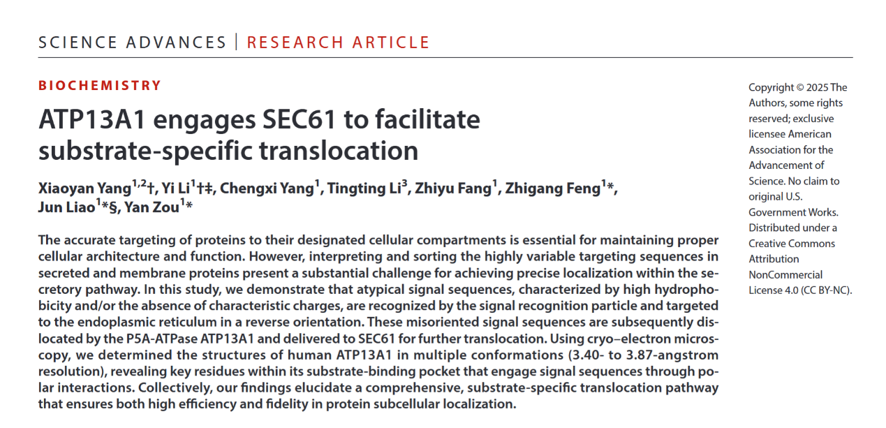 内质网转位是分泌蛋白和膜蛋白生物合成的关键步骤,确保这些蛋白质准确定位并发挥功能。然而,信号序列的多样性(体现在序列异质性、构象动态性和转运途径特异性上)对蛋白质转位系统提出了精确识别、高效分选和严格质控的挑战。近日,黑人巨大精品欧美_黑人巨大精品欧美黑寡妇_黑人巨大精品欧美一区二区_黑人巨大精品欧美一区二区免费_黑人巨大跨种族video_黑人巨大无码中文字幕无码_黑人巨茎大战俄罗斯美女_黑人巨茎大战俄罗斯美女生命科学与技术学院邹燕与合作者在国际学术期刊《科学进展》(Science Advances)发表了题为“ATP13A1 engages SEC61 to facilitate substrate-specific translocations”的研究论文,报道了P5A型转运体ATP13A1能够协助携带高疏水性和/或缺乏N端正电荷的非典型信号序列的蛋白质通过SEC61通道完成内质网转位,鉴定出ATP13A1负责底物结合与选择的关键氨基酸残基,揭示了该蛋白在确保蛋白质精准高效分选和定位中的重要作用。