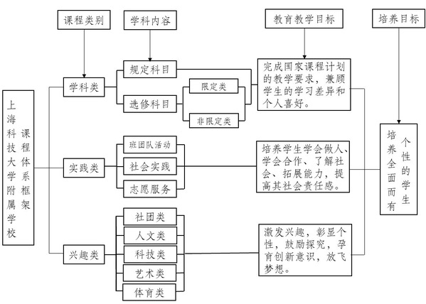 由“规定科目”和“选修科目”两部分组成。学科类“规定科目”旨在完成国家课程计划和教育教学的基本要求;而学科类“选修科目”之中又有“学科限定类”和“学科非限定类”之分。学科类“选修科目”的学科限定类和“学科非限定类”,则侧重兼顾学生的学习差异和个人喜好,富有选择性。
